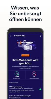 Tauchen Sie ein in eine neue Dimension des digitalen Schutzes mit Betrugswächter Pro, dem Herzstück von Avast Mobile Security & Antivirus. Diese innovative, KI-gesteuerte Suite ist Ihr unermüdlicher Wächter, der Sie rund um die Uhr vor den neuesten Betrugsmaschen schützt. Der Telefonwächter identifiziert und blockiert automatisch potenziellen Scam, Spam und kennzeichnet vertrauenswürdige Anrufe, während Sichere SMS Ihre Textnachrichten mit intelligenter Technologie vor schädlichen Inhalten bewahrt. Bei Fragen steht Ihnen der Avast-Assistent als Ihr persönlicher KI-Partner in Echtzeit zur Seite, um Ihnen schnell und präzise Antworten zu liefern.