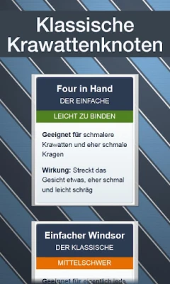 Meistere Krawattenknoten mit dieser ersten, komplett deutschsprachigen App! Erhalte detaillierte Schritt-für-Schritt-Anleitungen zum Binden verschiedener Knoten, unterstützt durch klare Bilder und verständliche Texte. So sitzt deine Krawatte immer perfekt.