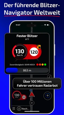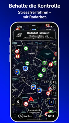 Radarbot bietet zuverlässige Blitzererkennung und Echtzeit-Warnungen, sogar offline. Genießen Sie eine entspannte Fahrt mit präzisen Verkehrswarnungen und spezifischen Tempolimits für PKW, Motorräder, LKW und Leichttransporter. Konzentrieren Sie sich auf das Wesentliche.