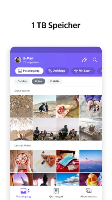 Bei Yahoo hat die Barrierefreiheit höchste Priorität. Yahoo Mail ist für jeden zugänglich konzipiert und bietet kontrastreiche Darstellungen, dynamische Textanpassung und umfassende VoiceOver-Kompatibilität für Bildschirmlesegeräte. Die intuitive Anordnung der Ordner am unteren Rand des Posteingangs erleichtert die Navigation für Nutzer von Hilfstechnologien. Und damit Sie nie wieder Speicherplatzmangel haben, schenkt Ihnen Yahoo Mail ganze 1.000 GB kostenlosen Speicher. Das sind 985 GB mehr als viele andere Anbieter und garantiert ausreichend Platz für all Ihre wichtigen Nachrichten und Erinnerungen.
